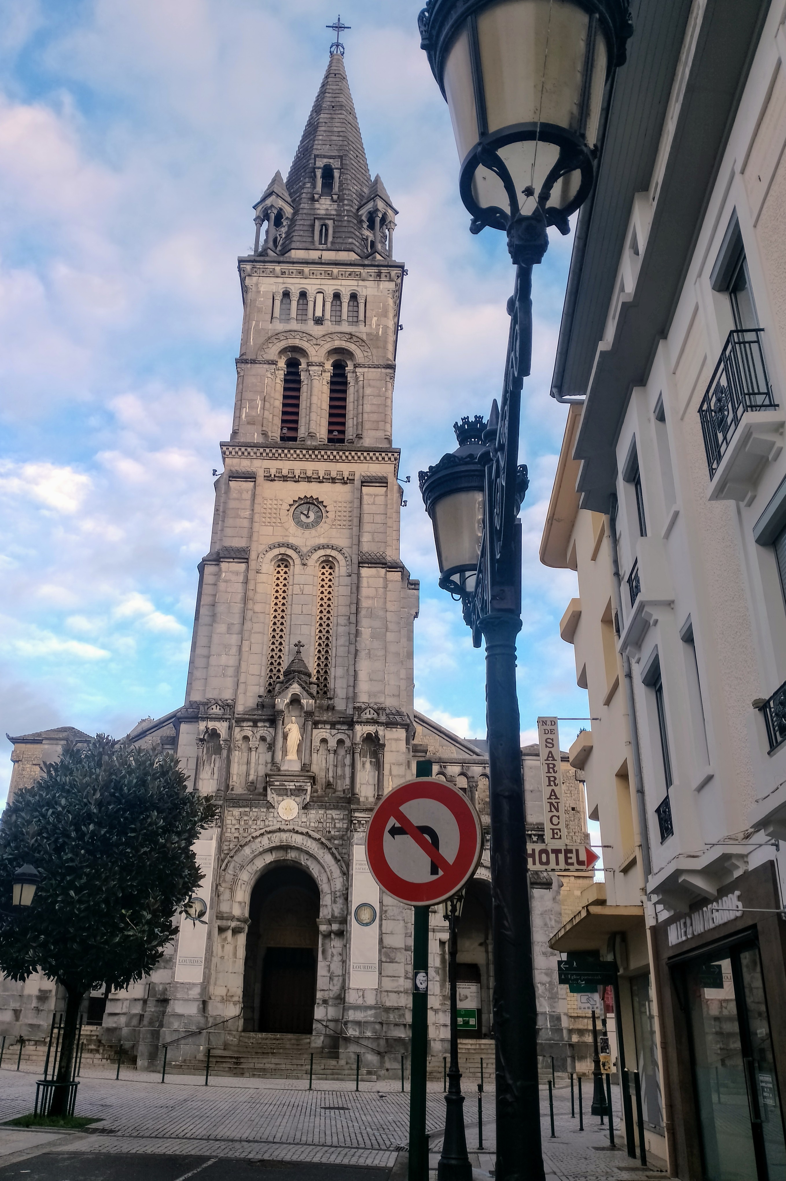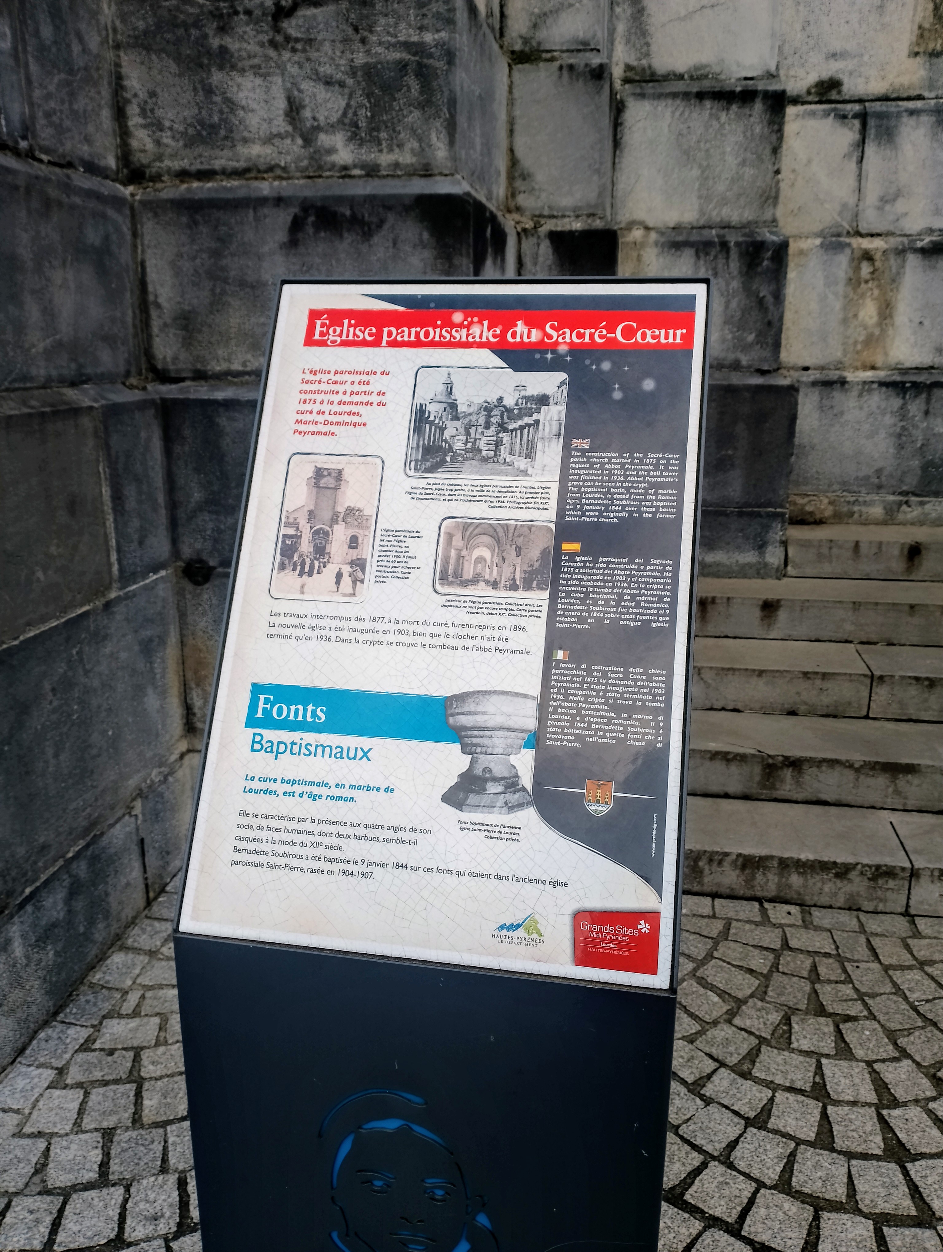 Les travaux de construction de l'église paroissiale du Sacré-Cœur débutèrent en 1875 sur proposition de l'abbé Peyramale. Il fut inauguré en 1903 et le clocher fut achevé en 1936. Dans la crypte se trouve le tombeau de l'abbé Peyramale. Le bassin baptismal, en marbre de Lourdes, est d'époque romane. Le 9 janvier 1944, Bernardette Soubirous est baptisée dans ces fonts baptismaux qui appartenaient historiquement à l'ancienne église Saint-Pierre.